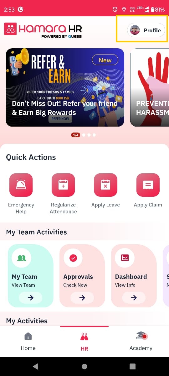 Step 5 : If we edit personal details, until approval, old details will be displayed and employee cannot edit any fields under personal details