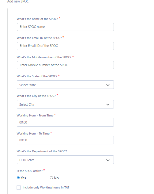 -Working Hour - To Time Enter the ending time of the SPOC’s working hour