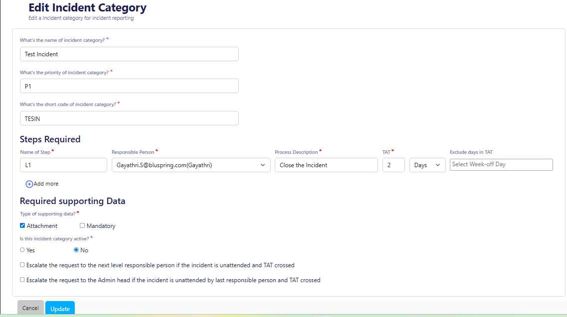 -Responsible Person: (person assigned to handle this incident category)