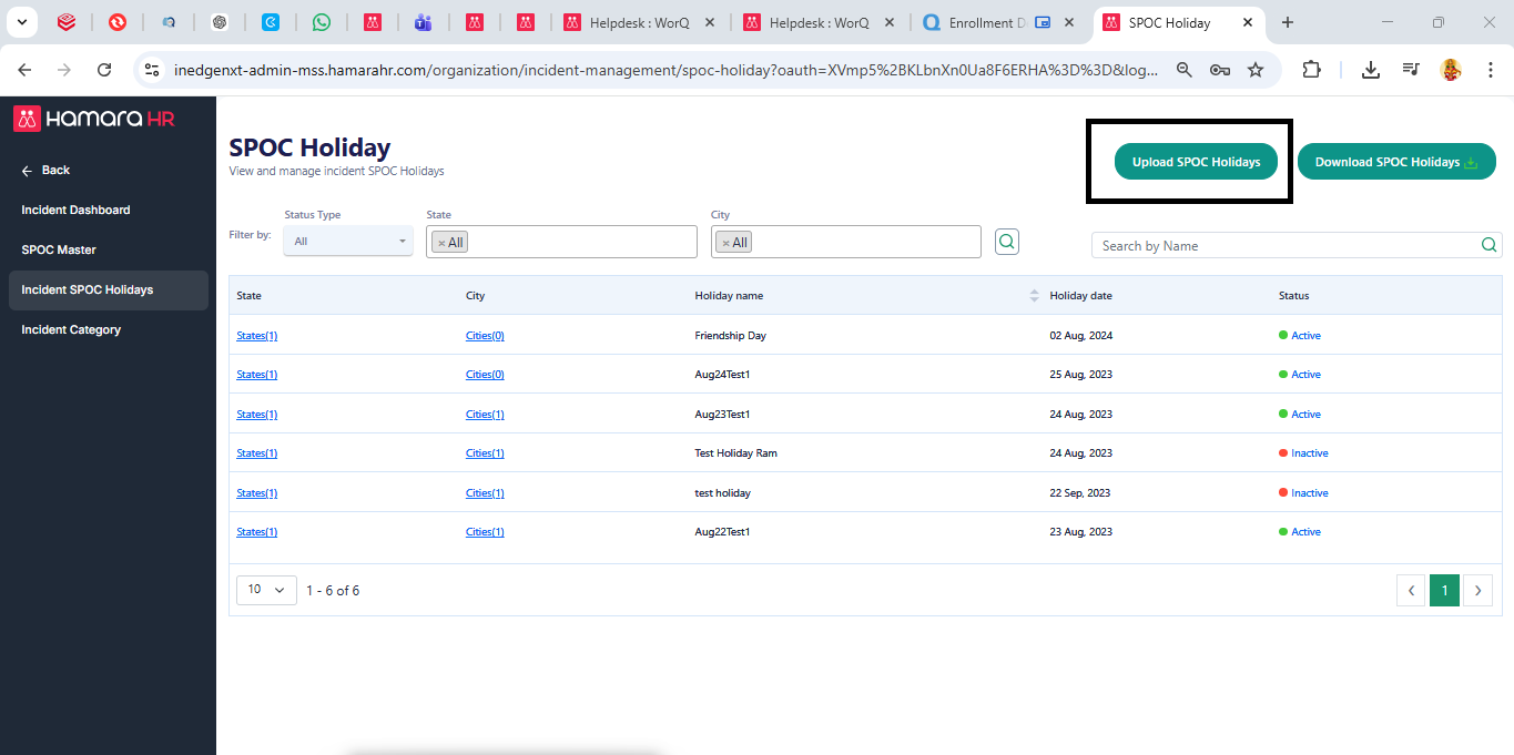 Super Admin → Organization → Incident Management → Upload SPOC Holiday (Only if required)