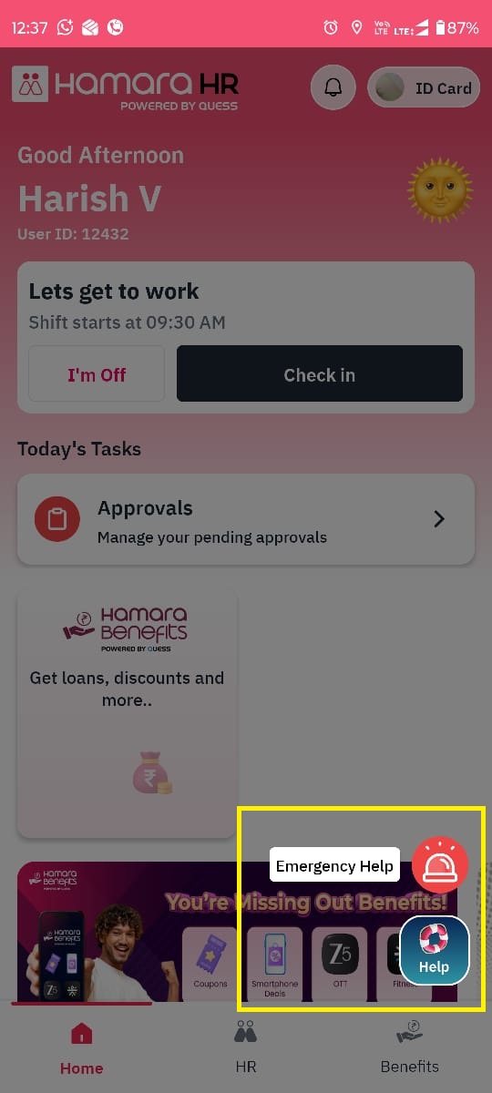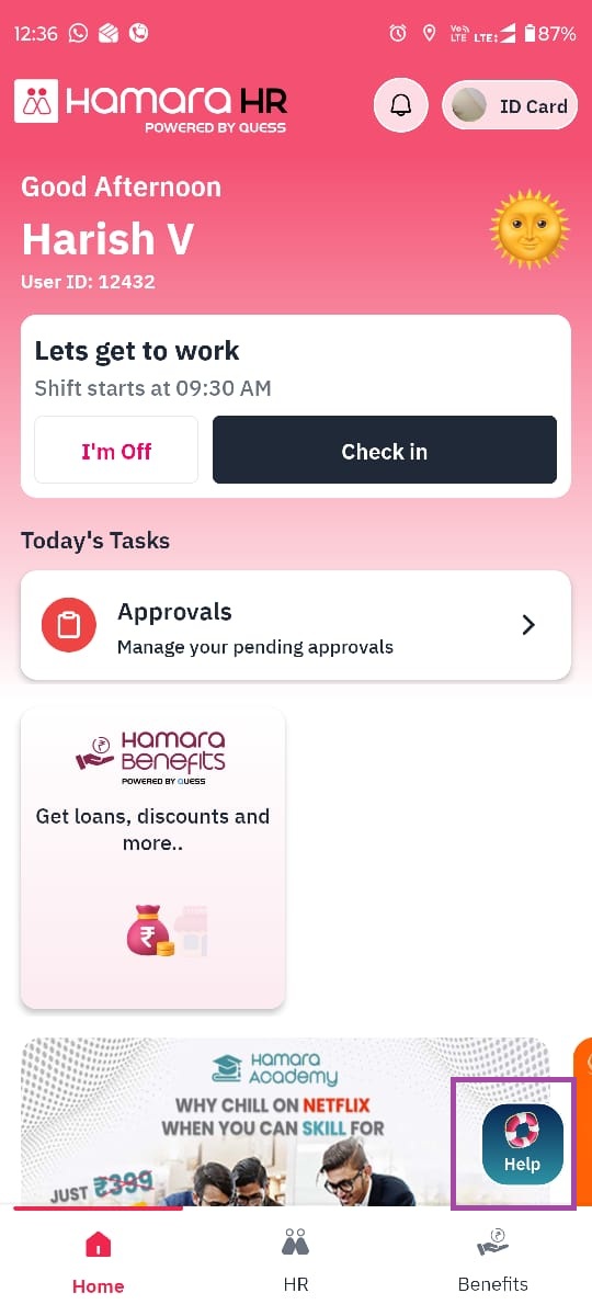 Open the Hamara HR Mobile App