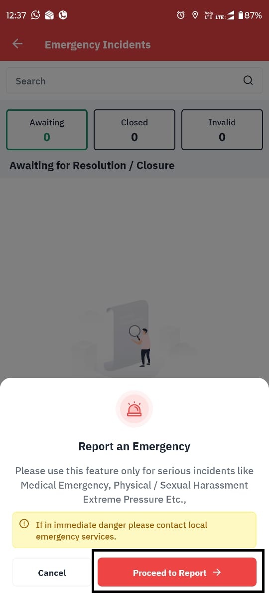 The next page will display Report an Emergency