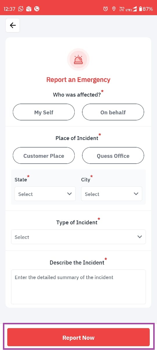 After filling all the required details, click Report Now.